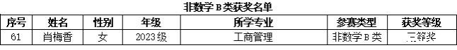11月20日,第十七届全国大学生数学竞赛(甘肃赛区)成绩揭晓,我校参赛学生取得优异成绩,61名同学喜获佳绩。其中,数学专业B组获奖33项(一等奖3项,二等奖12项,三等奖18项),非数学专业A组获奖27项(一等奖2项,二等奖11项,三等奖14项),非数学专业B组获得三等奖1项。