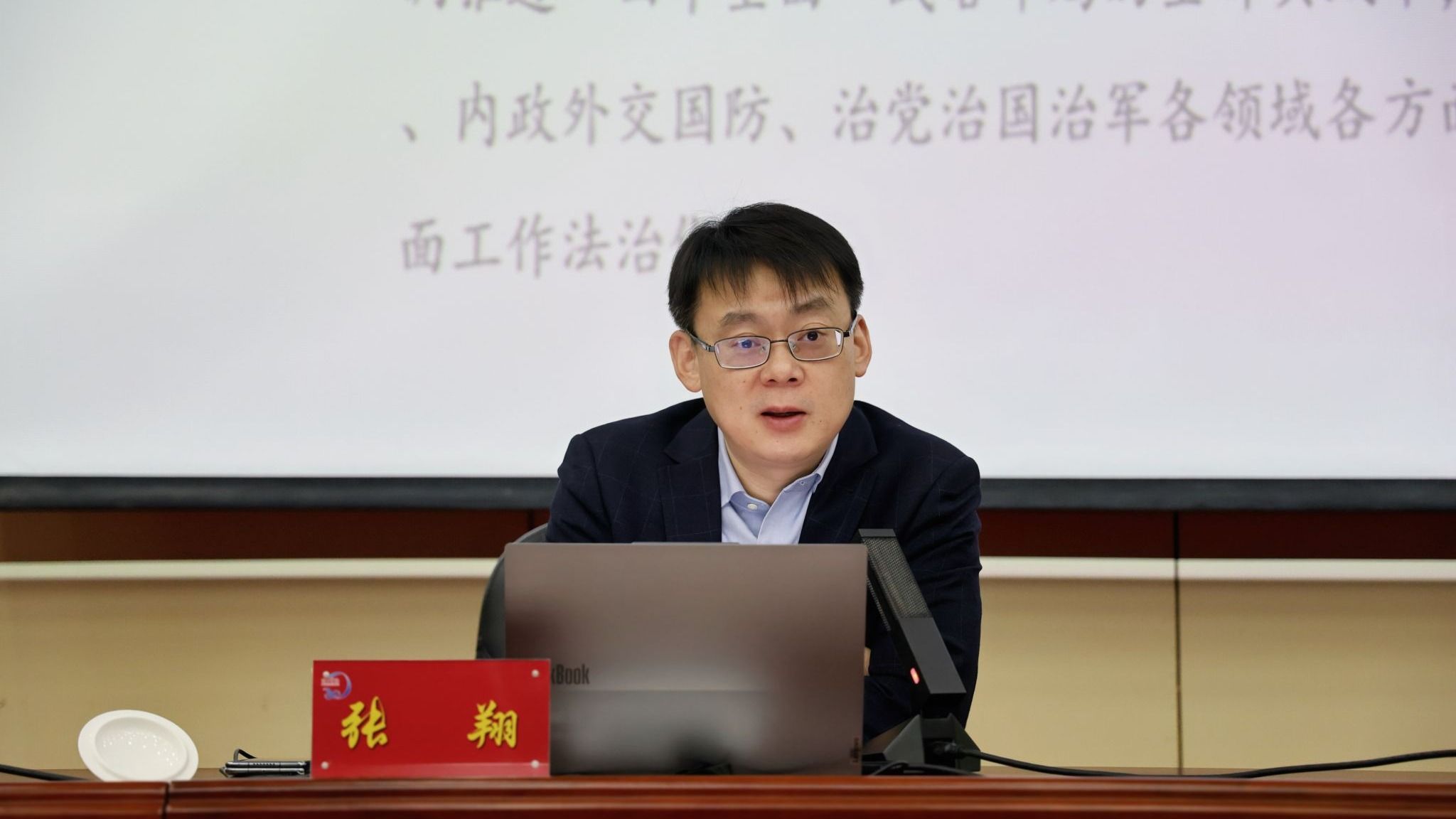北京大学法学院教授、宪法实施研究中心主任张翔作专题辅导。党委副书记高荣,党委常委、副校长唐志强作书面交流发言。