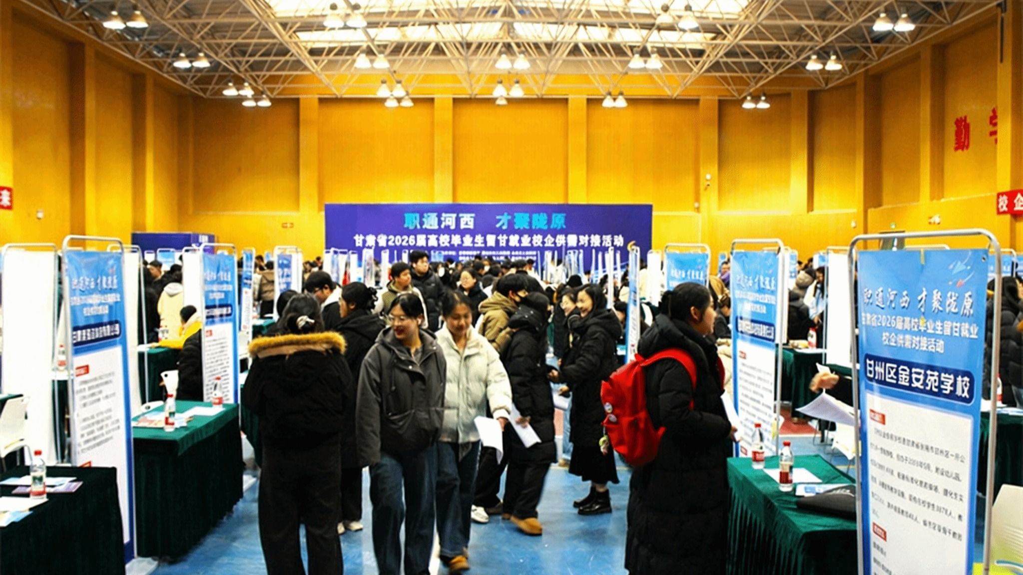 为促进人才供需有效对接,引导高校毕业生留甘就业创业,更好服务地方经济社会高质量发展,12月24日至25日,由甘肃省教育厅主办、伟德国际1949官网登录承办的“职通河西・才聚陇原”甘肃省2026届高校毕业生留甘就业校企供需对接活动在学校北区体育馆举办。甘肃省委教育工委委员、省教育厅党组成员、副厅长邓伟出席活动并讲话。伟德国际1949官网登录党委书记梁兆光,党委常委、副校长唐志强,张掖、嘉峪关、金昌、酒泉、武威等河西五市分管市领导刘勇、张莉、吴双峰、张跃峰、胡斌彦,来自全省48所高校的分管校领导及就业部门负责人,河西五市相关部门负责人,以及180余家企事业单位代表参加活动。