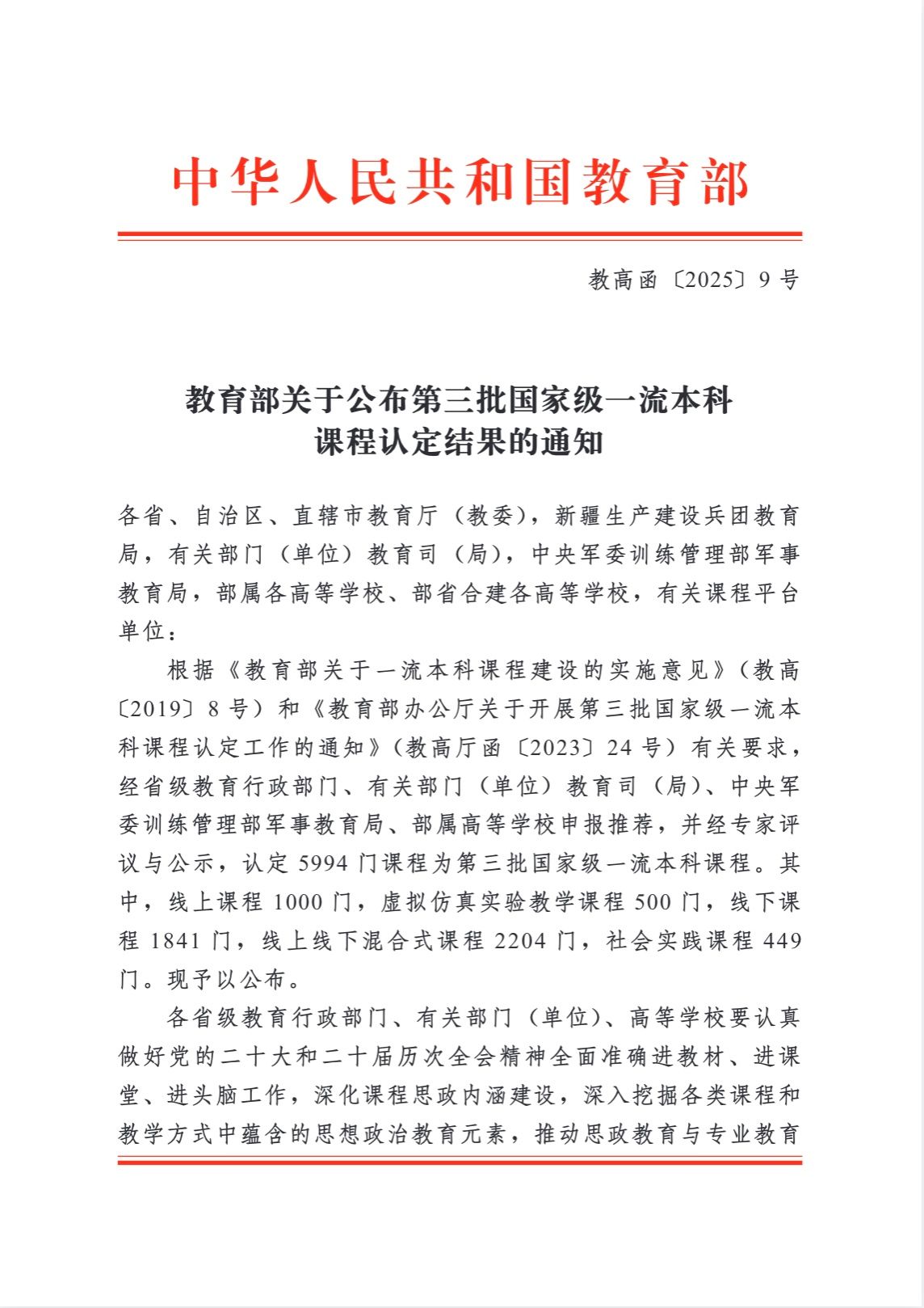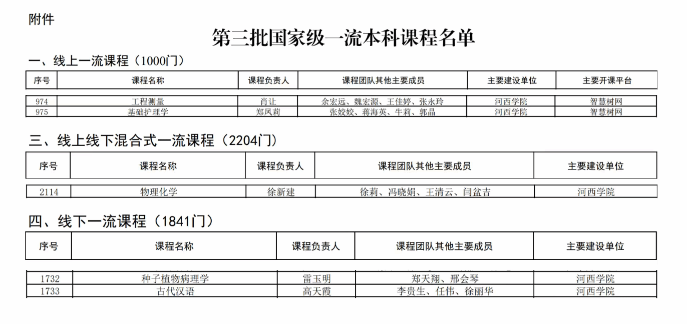 近日,教育部公布第三批国家级一流本科课程认定结果,学校再添5门国家级一流本科课程,标志着学校在课程建设与教育教学改革方面取得阶段性重要成果,一流本科教育建设迈上新台阶。