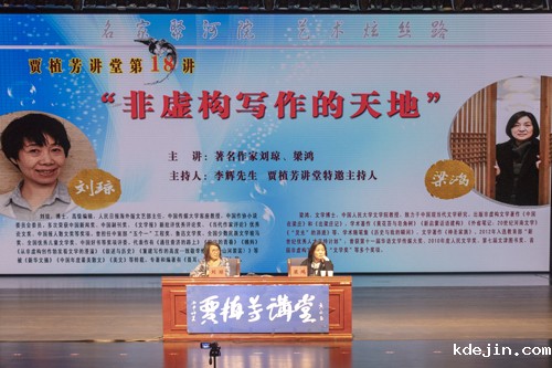 梁鸿教授、刘琼编辑以对话的方式,就非虚构写作展开了深入的探讨。刘琼编辑从非虚构写作出现的社会大变革等社会学背景、文学对当下丰富素材的消化和重构、非虚构写作是否有难度等话题开启对话。梁鸿教授从非虚构写作的概念误解、非虚构文学与社会真实之间的关系、非虚构写作的文学技巧等方面做了回应。二人还就非虚构文学写作与新闻写作的区别、非虚构写作中的主观性问题、非虚构文学写作中虚构与非虚构关系的平衡等展开讨论和对话。她们以自己丰富的实践经验和渊博的知识,深刻阐述了非虚构写作的诸多问题,其睿智的思辨、深刻的见解,都使广大听众深受启迪。