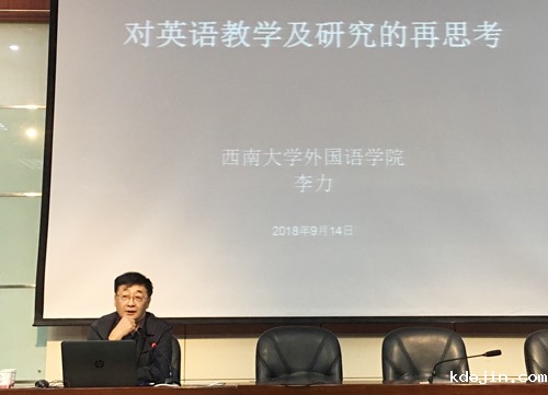 9月14日下午,应外国语学院邀请,西南大学博导李力教授在图书馆学术厅作了题为“对英语教学的再思考”的学术报告。“国培计划(2018)”甘肃省示范县(临夏县、积石山县)县级教师培训团队研修项目英语班学员、外国语学院全体师生聆听了报告。报告会由外国语学院负责人主持。