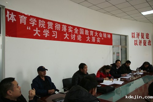 12月17日下午,体育学院在训练馆二楼会议室组织开展了学习贯彻全国教育大会和全国高等学校本科教育工作会议精神“大学习、大讨论、大落实”系列活动之学习研讨会。研讨会由学院党总支书记主持。