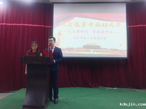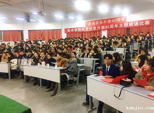 为庆祝改革开放四十周年,12月18日晚,美术学院举办了“走进新时代 实现新作为”庆祝改革开放40周年主题朗诵大赛。大赛旨在深入学习贯彻落实习近平新时代中国特色社会主义思想和党的十九大精神,在广大学生中营造庆祝改革开放40 周年的浓厚氛围,广泛宣传改革开放四十年来经济社会发展取得的辉煌成就,号召同学们为实现中华民族伟大复兴的中国梦而读书、学习、拼搏。