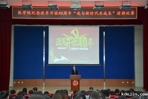 为庆祝改革开放四十周年,不断增强学生的自信心和自豪感,进一步繁荣校园文化和更好地展现医学生风采,12月17日晚,医学院举行庆祝改革开放40周年“我与新时代共成长”主题演讲比赛。