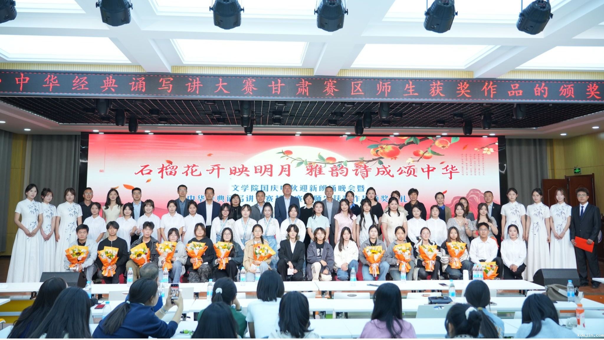 9月26日,文学院在学生发展中心举办“石榴花开映明月 雅韵诗成颂中华”国庆中秋迎新朗诵晚会暨中华经典诵写讲大赛甘肃赛区师生获奖作品颁奖典礼。学院领导、教师代表与各年级学生代表参加。