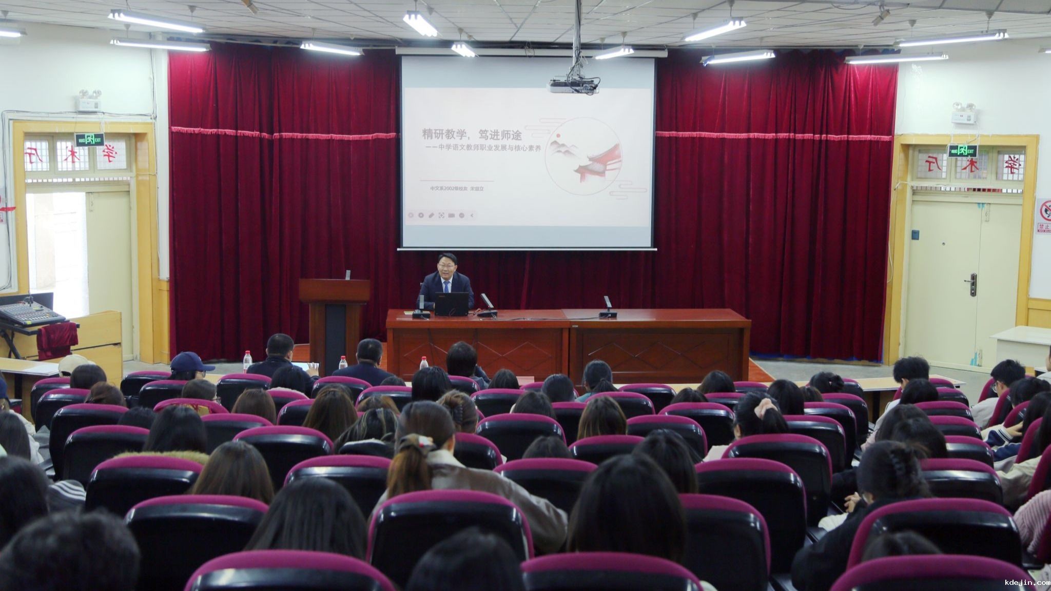 宋显立以《精研教学,笃进师途——语文教师核心素养与职业发展》为题,结合自身教学经历与赛事获奖经验,阐述了语文教师的素养提升路径与职业坚守。姚金祥则以《文心筑暖,薪火相传——一位文学院毕业生的十五年知行之路》为主题,分享了自己从校园走向职场,在供热行业默默实干、践行“慧暖万家”理念的奋斗历程。