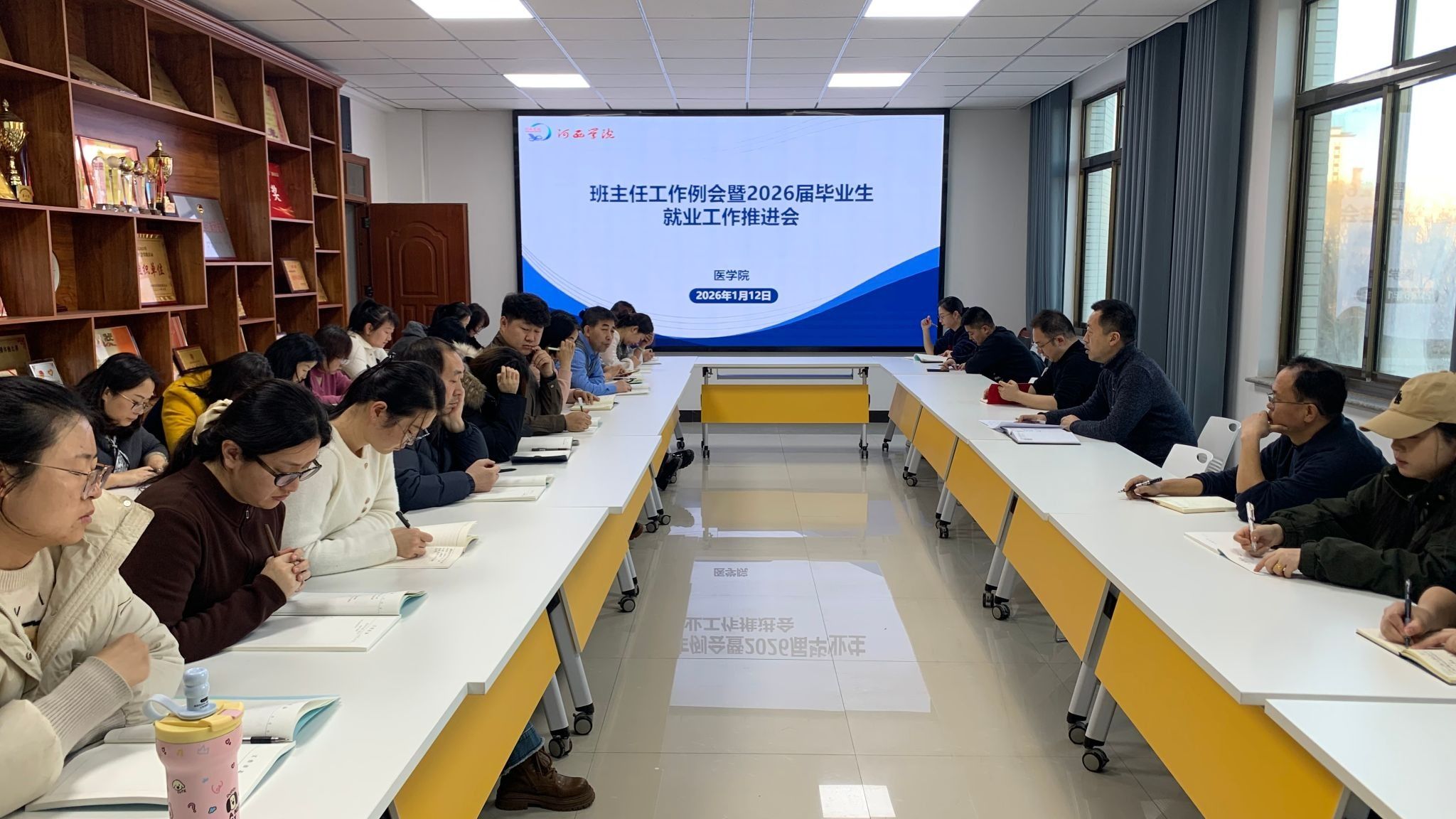 为切实做好寒假期间学生安全教育工作,密切家校联系,落实班主任责任,全面复盘2025年就业工作成效,分析当前就业市场新形势与新挑战,再次部署2026届毕业生就业重点任务。1月12日,医学院召开班主任工作例会暨2026届毕业生就业工作推进会,全体辅导员、班主任参会。