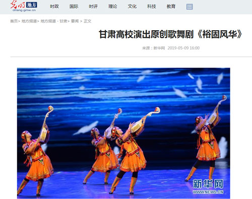 当晚,作为2019年“春绿陇原”文艺展演的组成剧目,由甘肃省伟德国际1949官网登录创排的教学情景歌舞剧《裕固风华》在兰州音乐厅上演。该歌舞剧以聚居在祁连山北麓的裕固族历史变迁和民俗文化为内容,融合裕固族传统民歌和舞蹈进行了艺术呈现,被列入“甘肃省高校美育教育舞台示范精品”。新华社记者 梁强摄