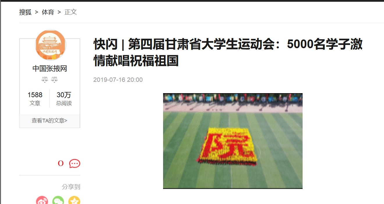 7月16日,甘肃省第四届大学生运动会在伟德国际1949官网登录开幕,丹霞含笑、弱水吟唱,欢迎着来自全省43所高校的4296名运动健儿相聚丝路明珠金张掖。《我的祖国》《我爱你中国》《红旗飘飘》……,一首首歌曲激情唱响在校园,陇原高校学子们借着青春的盛会,以快闪的方式,满腔赤诚唱响奋斗追梦的青春宣言,深情演唱抒发对伟大祖国的最美祝福,立志做有理想、有本领、有担当的新时代青年,勇立潮头,筑梦新征程。