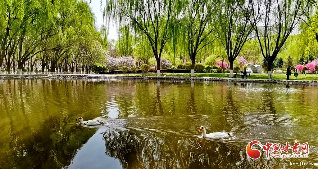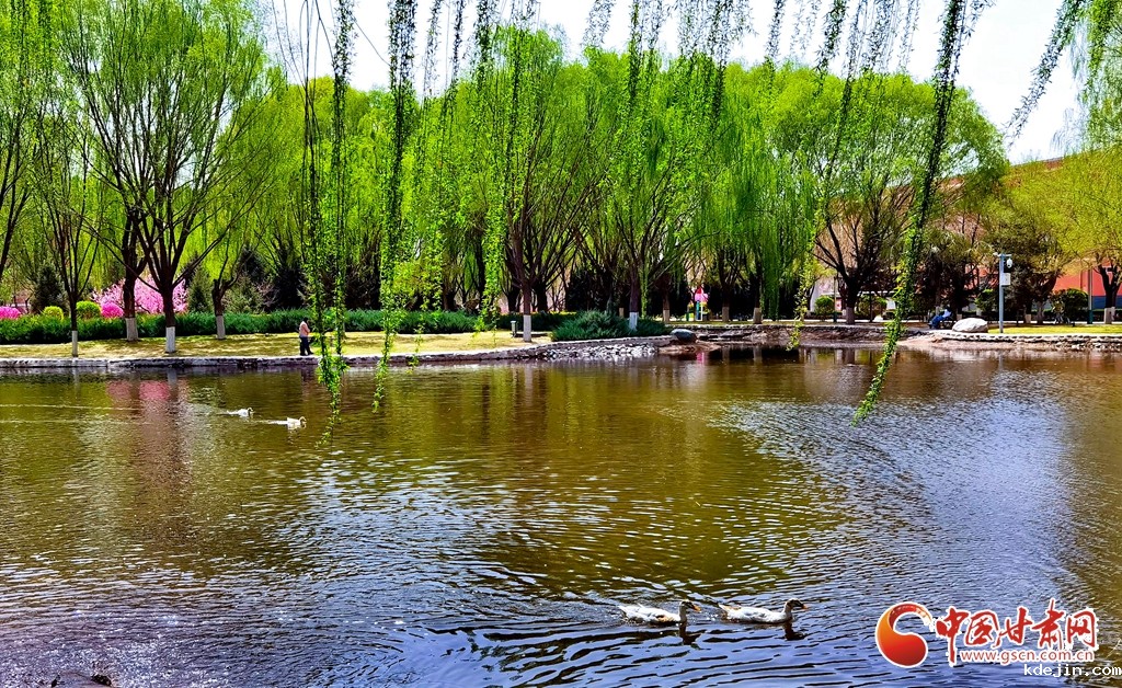 4月14日清晨,位于甘肃省张掖市伟德国际1949官网登录的明理湖畔,春风拂柳,鸭子嬉戏,空气中不时飘来花香缕缕,到处一派春意盎然的美景。