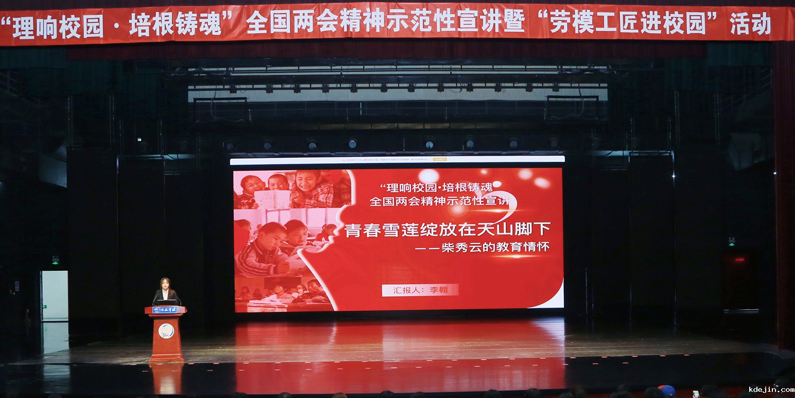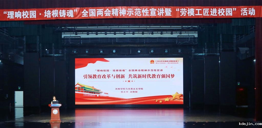 为全面深入学习领会习近平总书记系列重要讲话精神以及全国两会审议通过的报告和文件精神,根据省委教育工委、省总工会有关要求,4月28日下午,学校举办了“理响校园·培根铸魂”全国两会精神示范性宣讲暨“劳模工匠进校园”活动,700余名师生在河西讲堂聆听了宣讲。