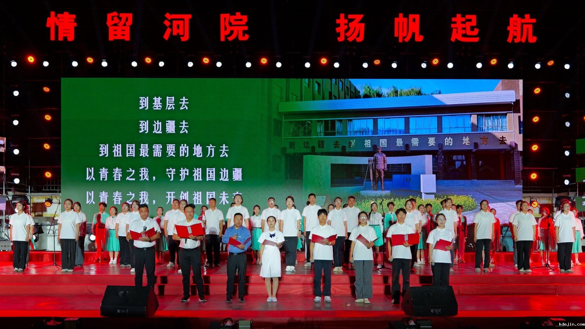 6月19日晚,学校在塑胶操场举办“情留河院 扬帆起航”欢送2025届毕业生文艺晚会。党委书记梁兆光,党委副书记、校长李广及全体校领导、党委常委,各单位、各部门、各二级学院负责人,全校教职工代表、在疆优秀校友代表、家长代表和2025届毕业生及各年级学生共5000余人观看演出。