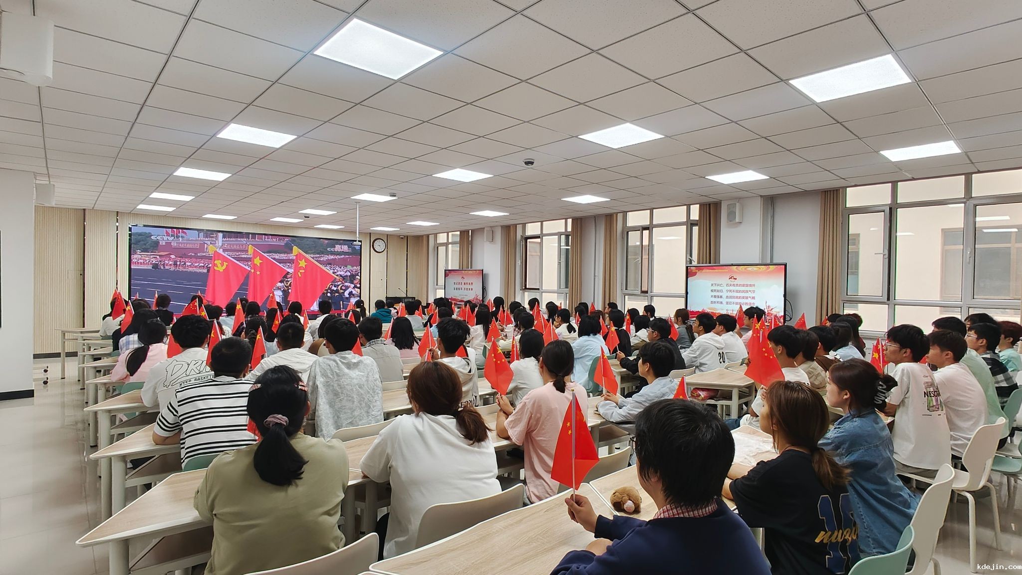 9月3日上午,纪念中国人民抗日战争暨世界反法西斯战争胜利80周年大会在北京隆重举行。中共中央总书记、国家主席、中央军委主席习近平发表重要讲话并检阅部队。我校师生以饱满的热情,通过多种形式收听收看直播盛况,共同铭记历史、缅怀先烈、珍爱和平、开创未来。