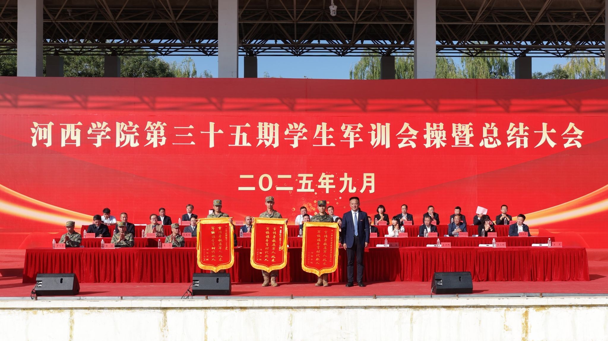 李广在总结讲话中肯定了军训取得的成绩,向承训教官表示衷心的感谢。希望同学们把军训中锤炼的意志、养成的作风转化为成长动力,以青春之我担时代之责。一是以军魂铸信念,永葆爱国之心。要心怀“国之大者”,坚定理想信念,筑牢精神根基,铭记历史、珍惜当下,从抗战精神、红西路军精神中汲取前进力量,以实际行动践行“请党放心,强国有我”的爱国誓言。二是以军纪促学风,锤炼过硬本领。要传承“追求卓越,自强不息”的学校精神,践行“三学二到一参加”的学习理念,努力成长为善思考、能动手、会创新的优秀人才,持续擦亮河西学子“一靠三实”的育人品牌,三是以军风润品行,涵养集体精神。要向身边的榜样学习,见贤思齐、从善如流,在集体中成长,在合作中共赢;要常怀感恩之心,尊重师长、关爱同学、服务社会,在奉献中实现人生价值。