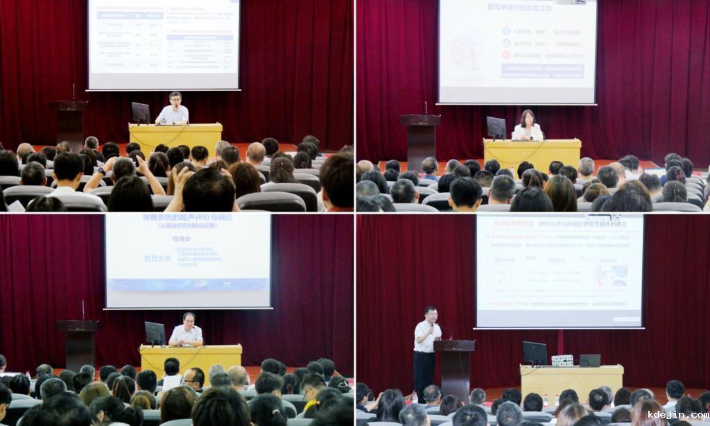 随后进行了主会场报告,复旦科研院王浩处长,长江学者、杰青、复旦大学材料科学系主任俞燕蕾教授,他得安教授,聚合物分子工程国家重点实验室杰青、步文博教授分别作了“复旦大学科技创新情况简介及国家自然科学基金深化改革思路与举措”“国家自然科学基金项目申报辅导”“骨骼系统的超声评价与调控:从基础研究到转化应用”和“化学动力学疗法:材料化学与肿瘤医学的完美融合”四场精彩的学术报告,使大家了解了复旦在科技创新和基金改革的思路与举措、学习了基金申报的细节、重点和规范申报的关键环节,掌握了跨学科研究的方法和超声影像学、材料科学和医学交叉融合最新前沿研究。