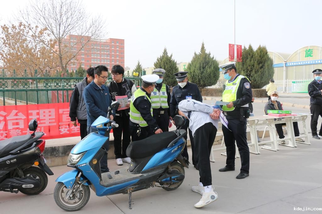 张掖市公安局甘州分局交警大队工作人员根据我校学生驾驶电动车实际情况,带领学校安保人员对过往的学生驾驶电动摩托车逐个检查,向同学们讲解驾乘电动摩托车不戴头盔、无证驾驶等交通违法行为的危害性;宣传《中华人民共和国道路交通安全法》中关于电瓶车的新的法律法规,提醒同学们尽早取得电动摩托车准驾资格,确保安全出行。同时,交警大队对安保人员如何区分电动自行车和电动摩托车及行驶条件进行培训,提升了安保人员开展电动车治理工作能力。活动期间,向校内师生、务工人员发放交通安全倡议书8000余份。