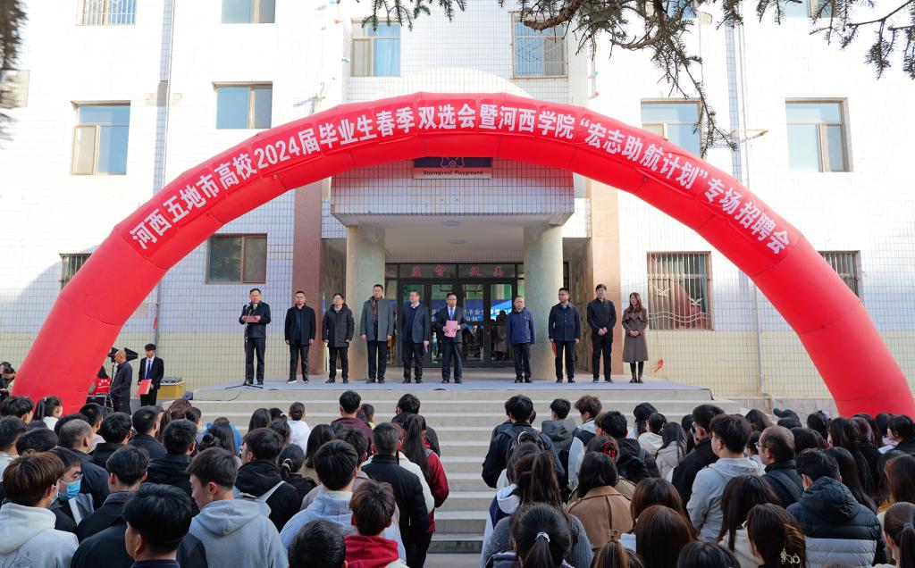 周勇宣布河西五地市高校2024届毕业生春季双选会暨伟德国际1949官网登录“宏志助航计划”专场招聘会开幕并讲话指出,伟德国际1949官网登录作为一所地处张掖的大学,始终坚持“做足河西文章、产出特色成果、建强丝路名校”,全面实施“强校工程”,着力建设与区域经济社会发展相适应的应用型人才培养体系、特色科研体系和社会服务体系,为早日建成特色鲜明的河西大学而团结奋斗。学校始终将毕业生就业创业工作摆在突出位置,深入学习贯彻习近平总书记关于做好高校毕业生就业工作的重要指示批示精神;学校站在国家战略的高度审视自身发展,将区位优势转化为独特价值,主动服务国家战略,树立“像为自己的孩子找工作一样为毕业生提供就业服务”的理念,持续打造“政治可靠、专业扎实、为人朴实、工作踏实”就业品牌,深入开展毕业生就业价值引领,引导毕业生留陇赴疆就业有“率”又有“质”。此次大型双选会是校企合作双方加强交流、促进合作的难得机会,将为学校与各企事业单位之间架起密切沟通和良好合作的桥梁,也为广大毕业生提供了非常宝贵的就业岗位和就业机会。
