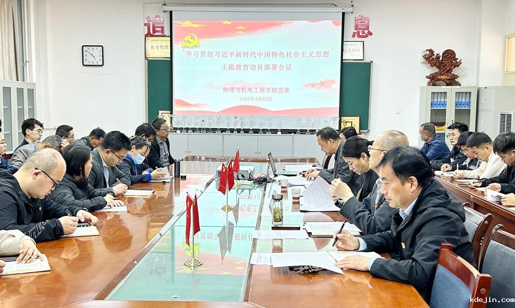 4月21日下午,物理与机电工程学院召开学习贯彻习近平新时代中国特色社会主义思想主题教育动员部署会议。学校主题教育第二巡回指导组到会指导,学院全体教工党员、教师和学生代表共51人参加了会议。