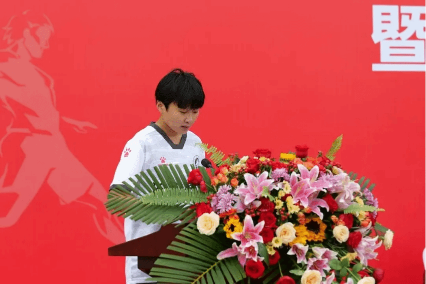 足球运动专业学生代表发言。要时刻牢记习近平总书记建设体育强国的殷殷嘱托,大力弘扬体育精神,努力成长为可以承载国家富强和民族复兴重任的新时代河院人!为新时代体育强国贡献力量。