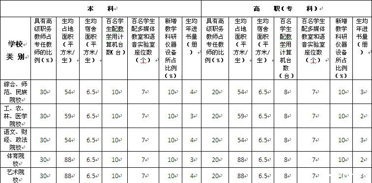 ⒈生师比指标高于表中数值或其它某一项指标低于表中数值,即该项指标未达到规定要求。