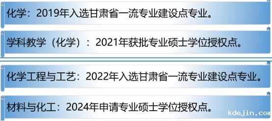 学院高度重视学科专业和课程建设,深入把握学科发展规律、产业需求规律、人才培养规律,凝练学科专业建设方向,优化学科专业结构,以培养德智体美劳全面发展、实践创新能力强的高素质应用型人才为目标,潜心育人育才。化学专业为甘肃省一流专业建设点专业和甘肃省高校特色专业,2021年获批学科教学(化学)硕士学位授权点,为其他专业的建设起到了示范作用。化学工程与工艺专业2022年获批甘肃省一流专业建设点专业。依托应用化学、化学工程与工艺两个专业,2023年,申报材料与化工专业硕士授权点。《化学教学论》4门课程为省级精品课程,《物理化学》为省级网络资源共享课,《分析化学》5门课程为甘肃省一流课程,《化学综合实验》为甘肃省创新创业示范课程。近五年,获甘肃省教学成果二等奖2项、一等奖1项,甘肃省教学成果培养项目6项,甘肃省创新创业教育教学改革研究项目2项,伟德国际1949官网登录教学成果一等奖5项、二等奖6项,学院学科专业发展势头良好,教学科研成果突出。