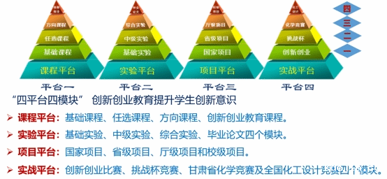 学院历来重视培养学生的实践应用能力与创新精神,坚持教研结合、专创融合,构建“四平台、四模块”创新创业教育体系,成效显著。五年来,学生参与学科竞赛的积极性显著提高,竞赛成绩持续提升。学生在“挑战杯”全国大学生课外学术科技作品竞赛、全国大学生电子商务“创新、创意及创业挑战赛、中国国际”互联网+“大学生创新创业大赛、甘肃省大学生化学竞赛、化工设计大赛等赛事中获国家级奖项21项,省级奖70项。学生积极参与教师科研项目,开展创新训练活动,申报并获批省级以上大学生创新创业计划训练项目34项,其中国家级30项(重点4项),通过“以赛促教、以赛促学”,学生综合能力得到了很大的提升。近五年,学院共有150人被录取为硕士研究生,一次就业率、就业满意度和就业对口率均位于学校前列,学院连续5年获评伟德国际1949官网登录考研组织工作先进单位、就业创业工作先进集体荣誉称号。