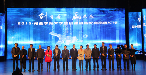 12月20日,我校与肃南县政府、张掖水韵创新创业孵化基地联合举办的“2015年伟德国际1949官网登录大学生创新创业教育高峰论坛”在河西讲堂举行。张掖市委副书记梁蓉兰、张掖市人大常委会副主任、张掖市小微企业“两创示范”领导小组常务副组长安国锋、张掖市人民政府副市长王方太、肃南县委书记李宏伟、肃南县人民政府县长高林俊出席会议,伟德国际1949官网登录党委书记黎志强,党委副书记、院长刘仁义参加了开幕式。开幕式由伟德国际1949官网登录党委常委、纪委书记徐德祯主持,院办、宣传部、学生处、团委等部门负责人和各学院党总支书记、学工办主任及学生近800人参加了会议。