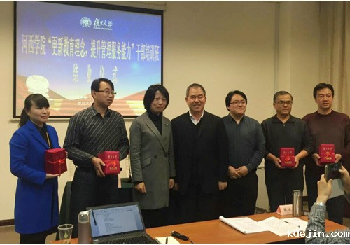 刘仁义校长、王兵副书记深入培训课堂,与学员一起聆听了复旦大学专家的高水平报告,并慰问了在复旦大学进修和访学的教师和挂职干部,刘仁义还参加了干部培训班结业仪式并讲话,要求参训学员和进修教师要转化学习成果,与我校实际相结合,创造性地开展各项工作,为学校教学和发展做贡献。