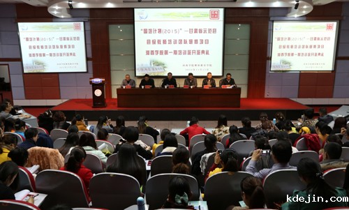 11月17日,“国培计划(2015)”甘肃省示范县县级教师培训团队研修项目第一期培训班开班典礼在我校举行。党委常委、副校长张勇教授,教师教育学院、外国语学院、音乐学院、继续教育学院等部门负责人、班主任和培训学员参加了开班典礼。