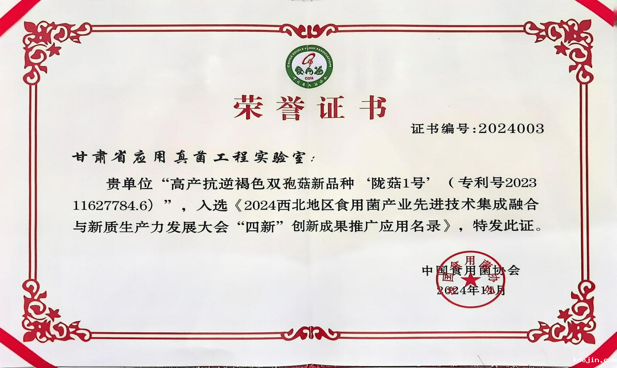 会议以“集成先进技术,发展新质生产力”为主题,聚焦食用菌行业关注的行业政策、产业延伸、技术革新及行业痛点等热点问题,与会行业专家分析和解读了近年来食用菌产业发展中的关键因素和难点问题。学校甘肃省应用真菌工程实验室驯化选育的“高产抗逆褐色双孢菇新品种‘陇菇一号’(专利号:202311627784.6)”入选《2024西北地区食用菌产业先进技术集成融合与新质生产力发展大会“四新”创新成果推广应用名录》。