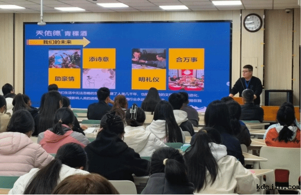 吴渭晨从天佑德青稞酒的发展历史、公司未来的发展战略、企业对人才的需求、当前白酒市场营销的思考与分享及新时代大学生如何做好人生规划等五个方面,为同学们上了一堂精彩的导论课。他站在企业战略和行业前沿的高度,以天佑德企业为例,通过丰富的数据和生动的图表,分析了酿酒市场的规模、增长趋势以及不同酒种的市场占有率变化、青稞酒独特的酿造工艺和品牌战略。同学们从中清晰地看到了酿酒行业广阔的发展前景和无限潜力,对自身所学专业的未来充满了期待。