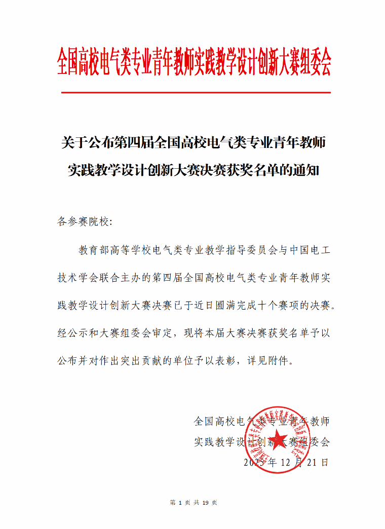 学校在全国高校电气类专业青年教师实践教学设计创新大赛中获佳绩